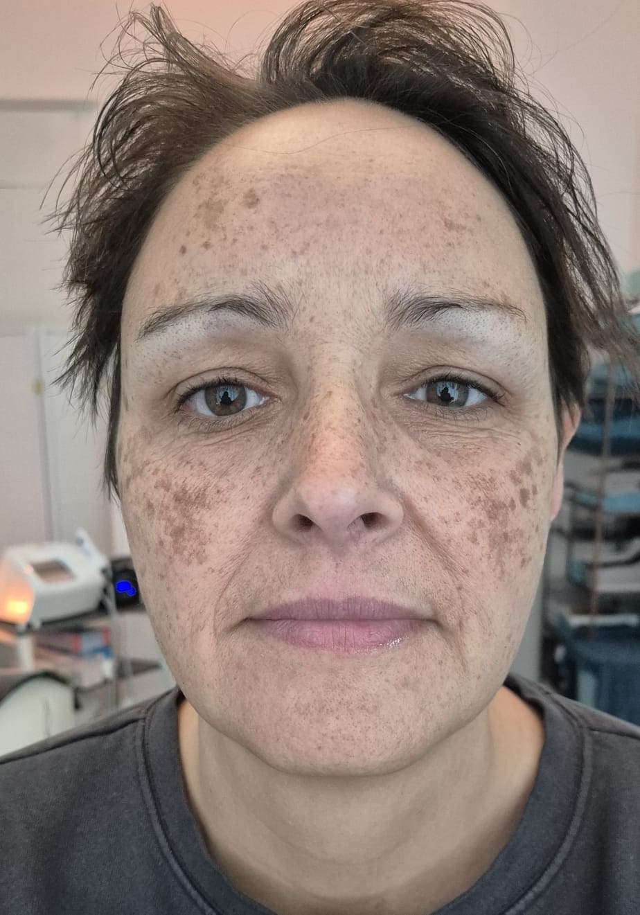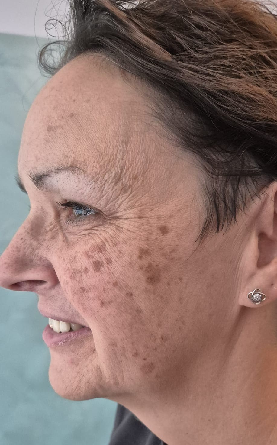 - Pigment und Altersflecken werden aufgehellt und lösen sich im weiteren Behandlungsverlauf sichtbar bis sie nicht mehr sichtbar sind.